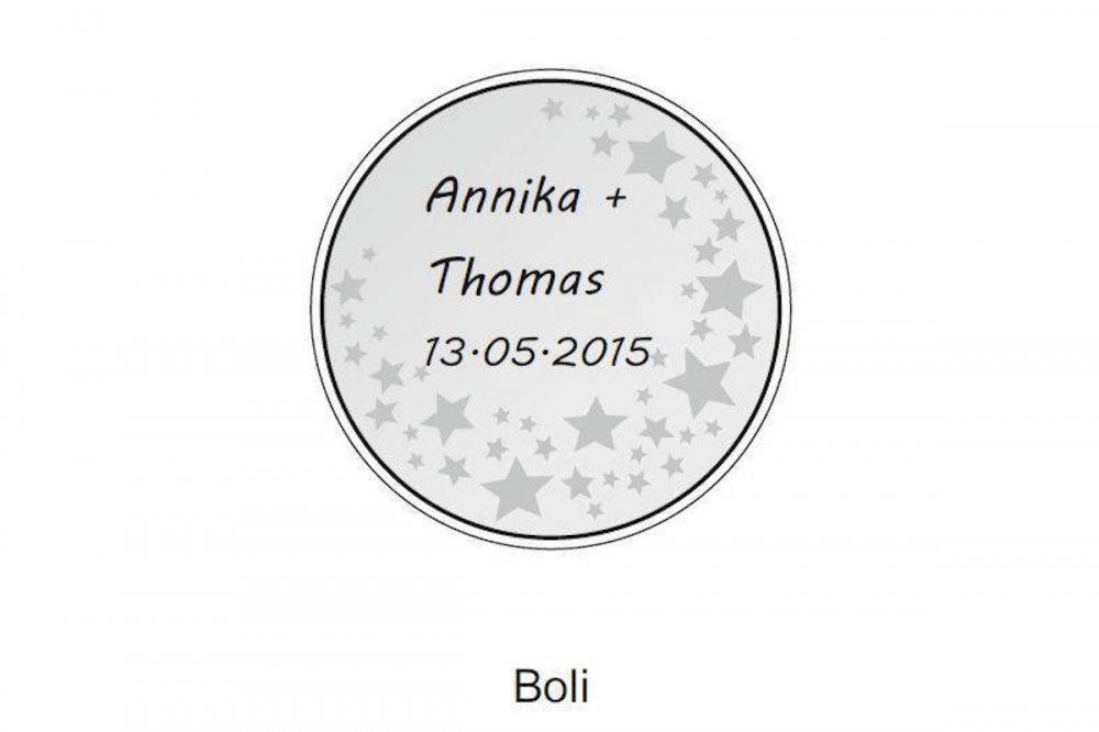 Die Rückseite eines Hochzeitstalers kann individuell gestaltet werden. Gravuren wie der Name des Brautpaares, das Hochzeitsdatum oder ein persönlicher Spruch machen den Taler zu einem einzigartigen Erinnerungsstück.
